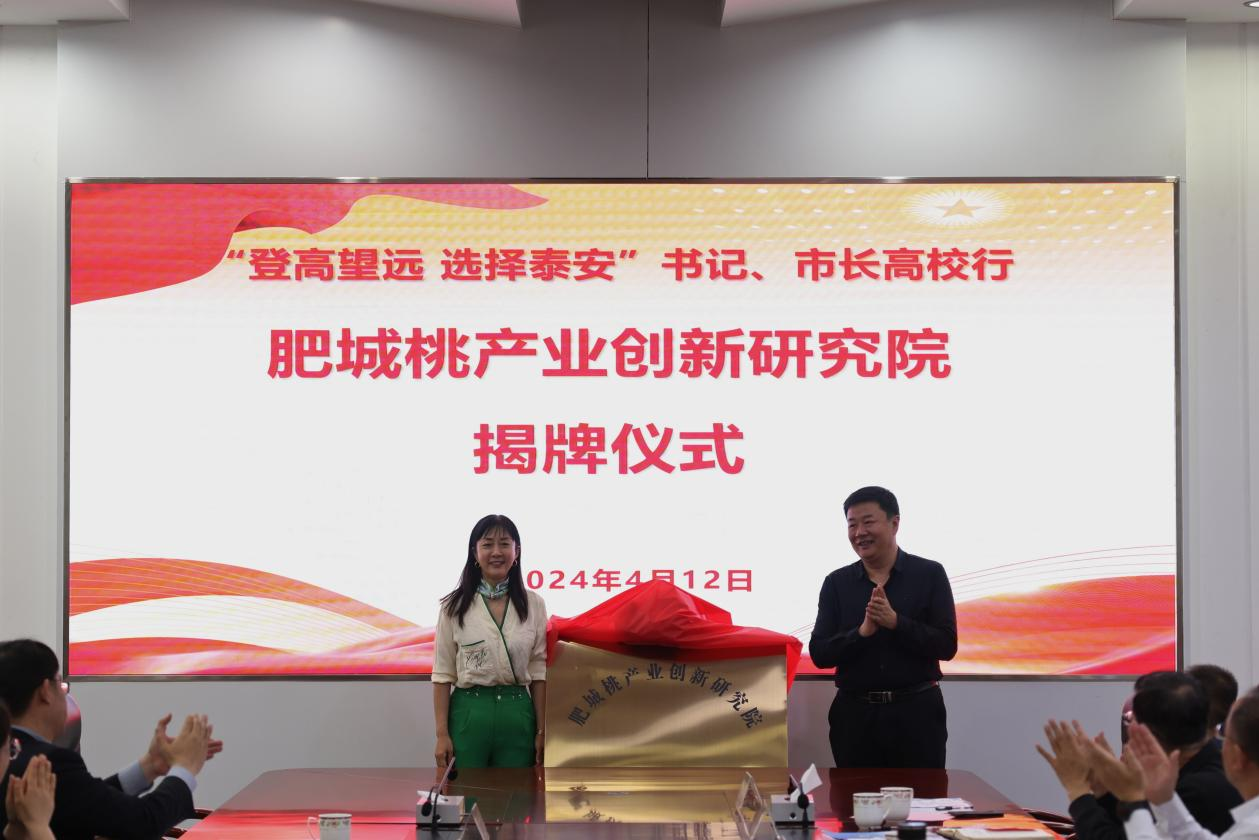 肥城市政府党组成员、副市长孙栋与今年会官方网站党委委员、副校长杨玖庆共同为“肥城桃产业创新研究院”揭牌。