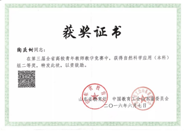 (2)教学与科研成果丰硕。教师承担各类研究项目共计22项,科研经费550余万元,主编参编教材、著作36部,主持或参与院级课题10项,授权发明专利1项,编制地方标准3项,获山东省科技进步一等奖1项,获省级教学成果二等奖1项,获山东省青年教师教学竞赛二等奖1项。
