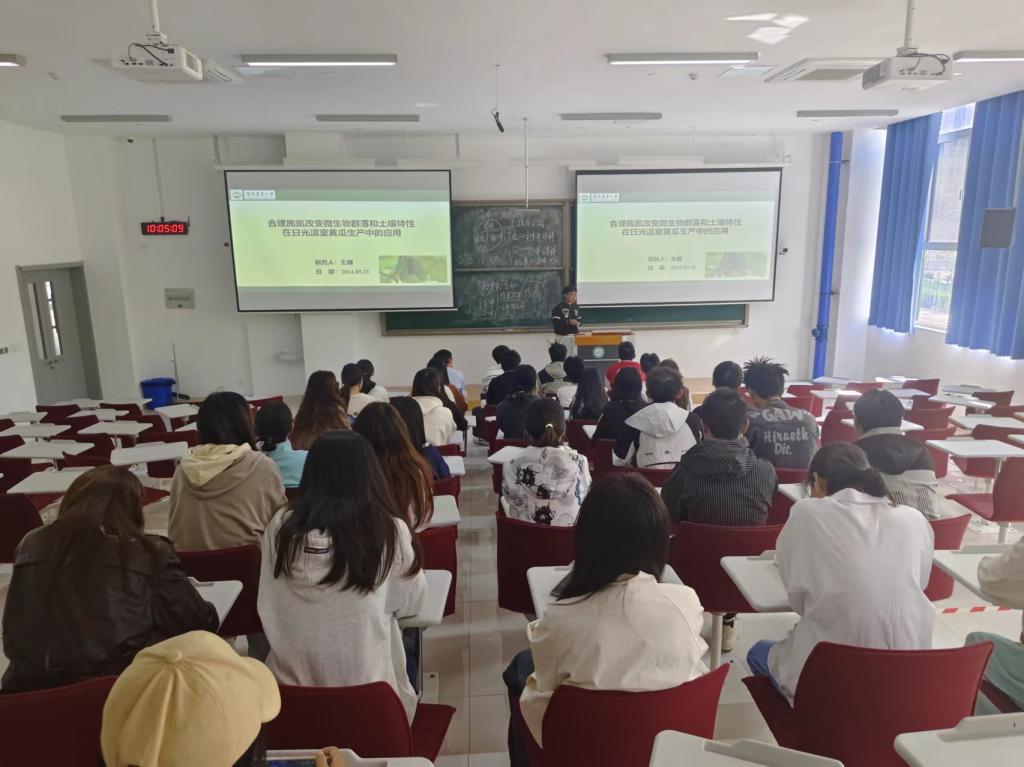 9月18日,我院王臻博士为2023级园艺专业同学举办了题为《合理施氮改变微生物群落和土壤特性在日光温室黄瓜生产中的应用》的科普讲座。王臻博士从研究背景、试验设计、结果分析等方面深入讲解,为同学们带来专业知识盛宴,也为他们未来学习和研究指明方向,助力园艺事业发展。