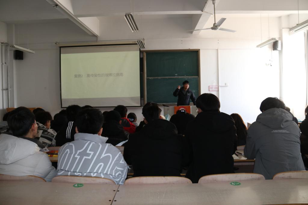 本次课程分为三个环节:和康源集团培训高级专员齐鑫从总体目标、课程体系、课程计划、讲师资质、激励机制等方面对课程做了简要介绍;生产中心生物安全专员宋道利做了种禽生物安全专题讲座;素质拓展环节采用体验式培训的方法,进行了破冰系列活动。整场课程中学生们踊跃互动,现场气氛活跃。