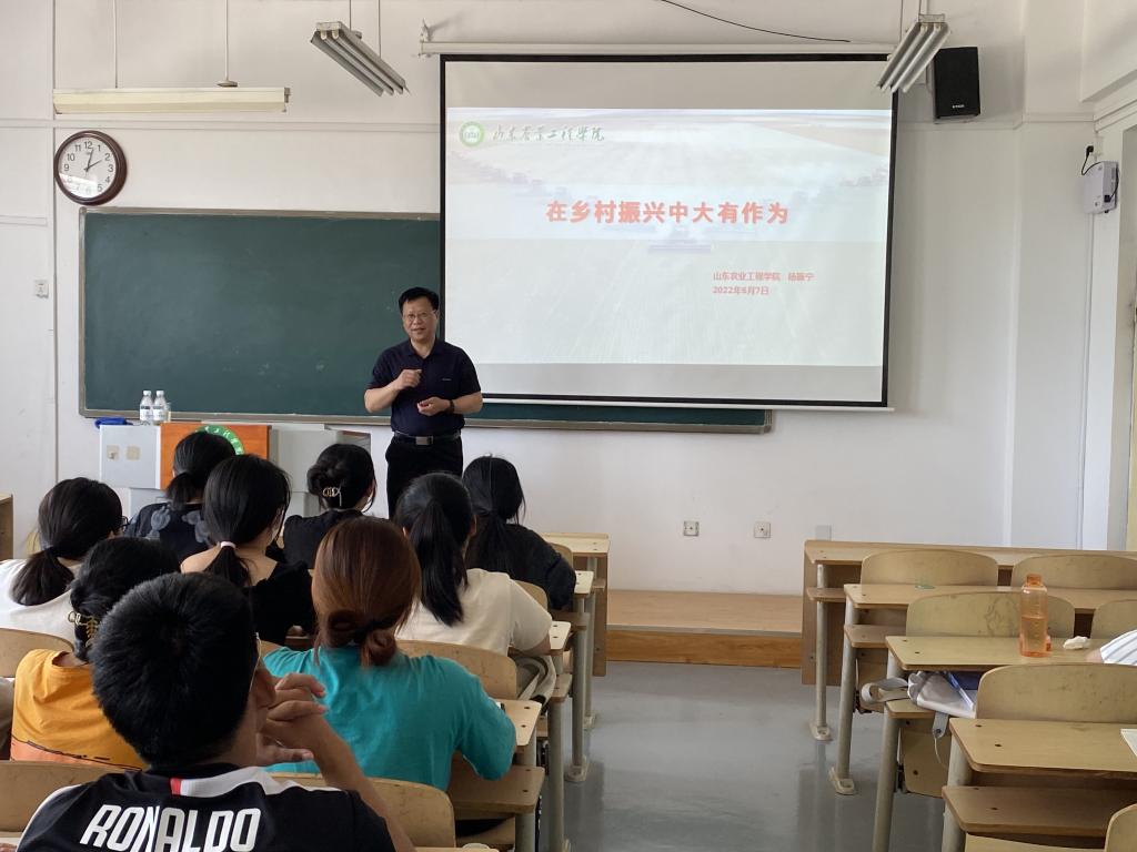 6月7日下午,校党委委员、副校长杨振宁以“在乡村振兴中大有作为”为题,在齐河校区226教室为我院21级动物医学(校企)专业学生上了一堂生动精彩的思政大课。