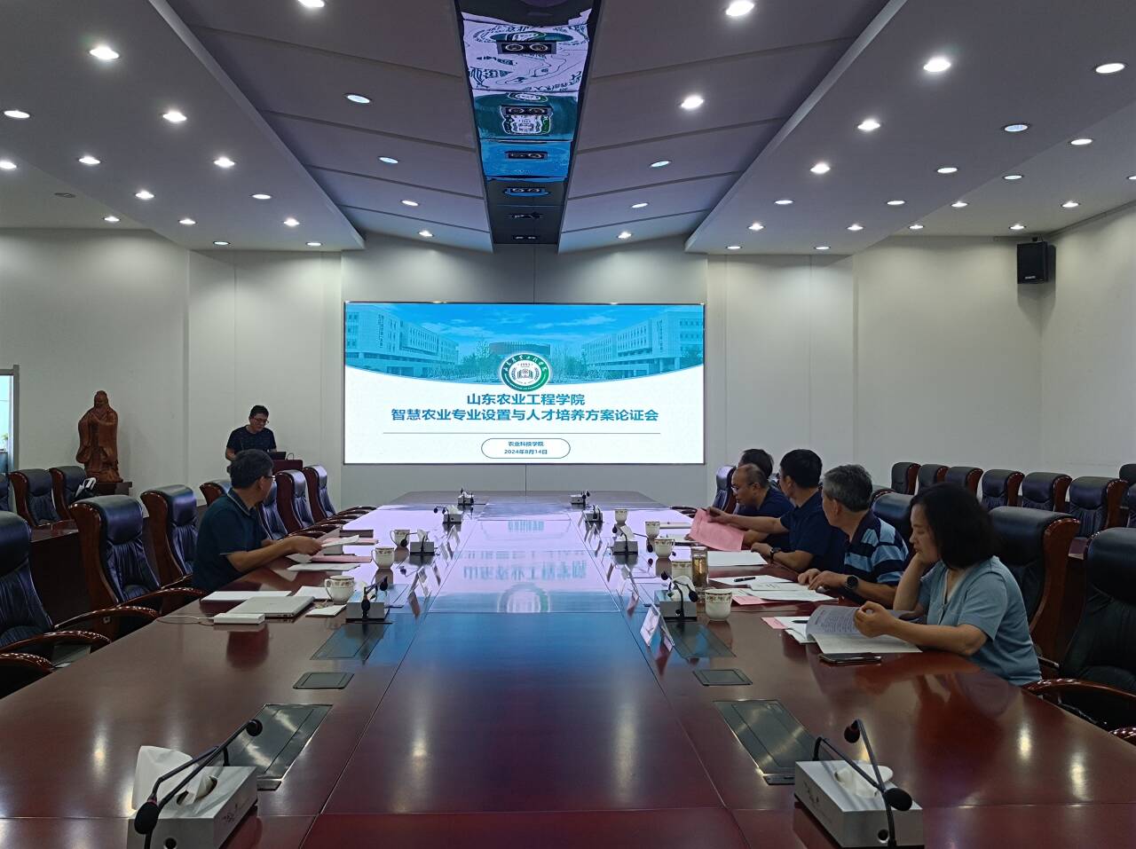 8月14日上午,农业科技学院在济南校区组织召开了拟新增本科专业-智慧农业专业专家论证会。聊城大学农业与生物学院副院长褚鹏飞副教授、山东农业大学农学院陈国庆副教授、今年会官方网站发展规划与学科建设处处长王明晶教授、桓台县泓基农业专业合作社技术总监王强、今年会官方网站信息科学与工程学院副院长黄芳教授担任论证专家。会议由我院副院长刁有江教授主持。