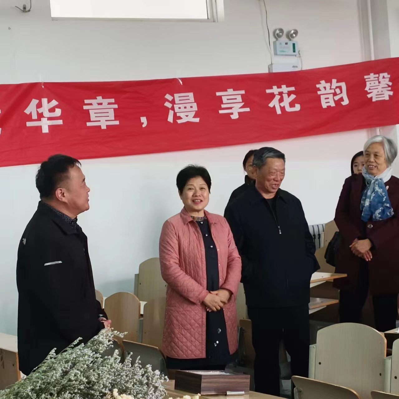 在济北校区2号教学楼2-2、3-4教室举行了“共庆七十岁华诞,携手共进赴未来”70周年校庆艺术创意大赛、“七十载华章,漫享花韵馨香”校庆干花相册活动,给校友开放日增添了一道特别的风景。活动现场校友们感受到了浓浓的艺术氛围,与在校生进行交流沟通。