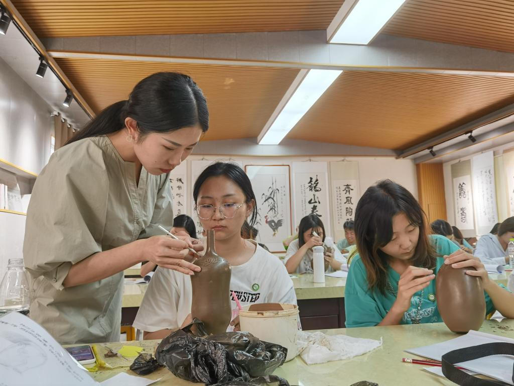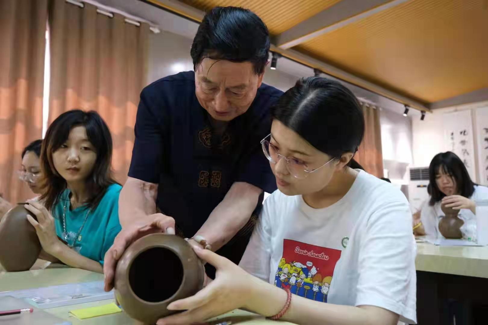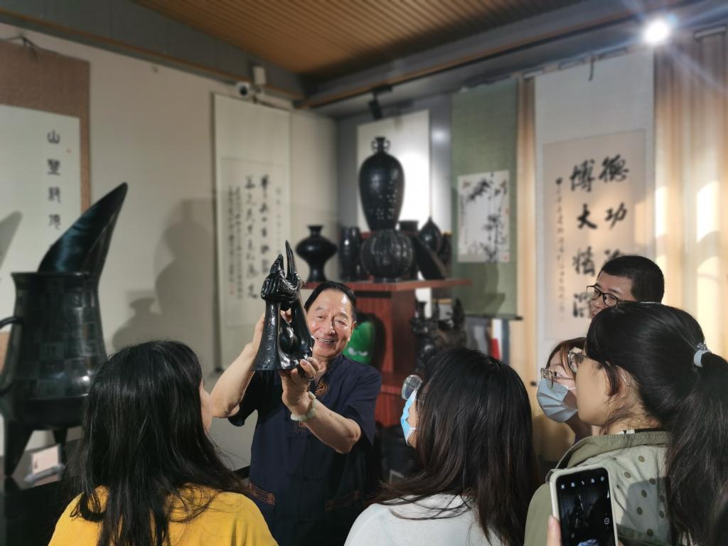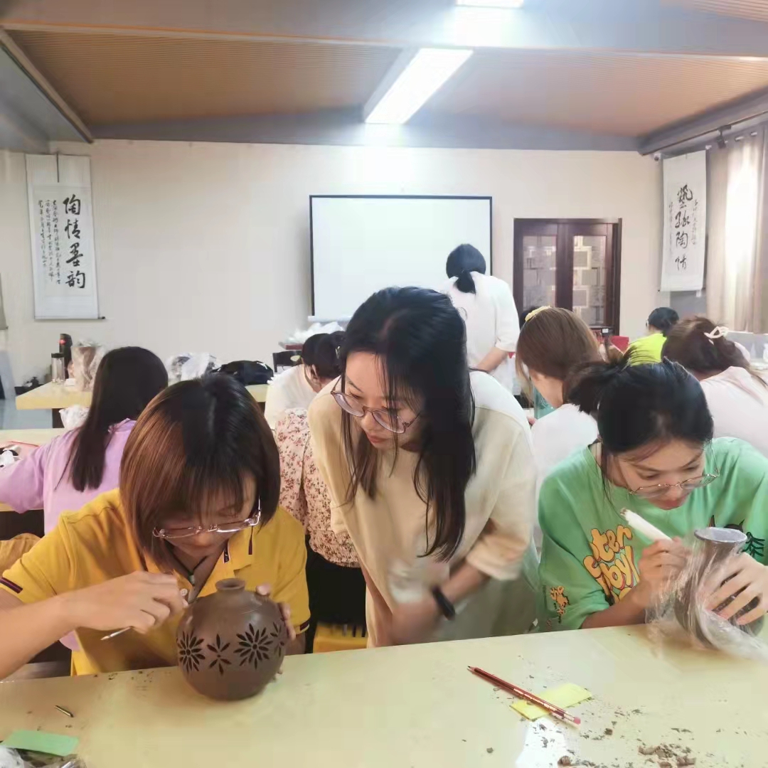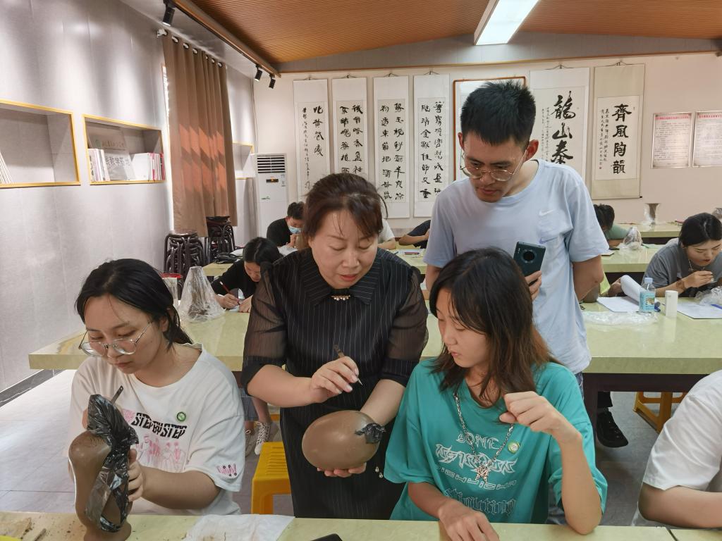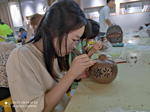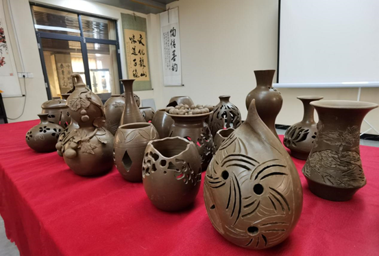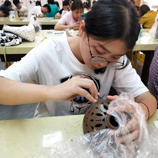 该实践依托于共建课程《泥塑与陶艺设计》《陶艺设计项目实践》,企业指导老师刘德功、胡新苗等工艺美术大师利用实物讲解、现场示范等教学手段向大家传授黑陶雕刻及手工成型技能,通过为期三天的实训,学生们强化了陶艺成型制作技法,增强了对三维空间的认识,开发了艺术思维,也创作出一批出色的黑陶产品。