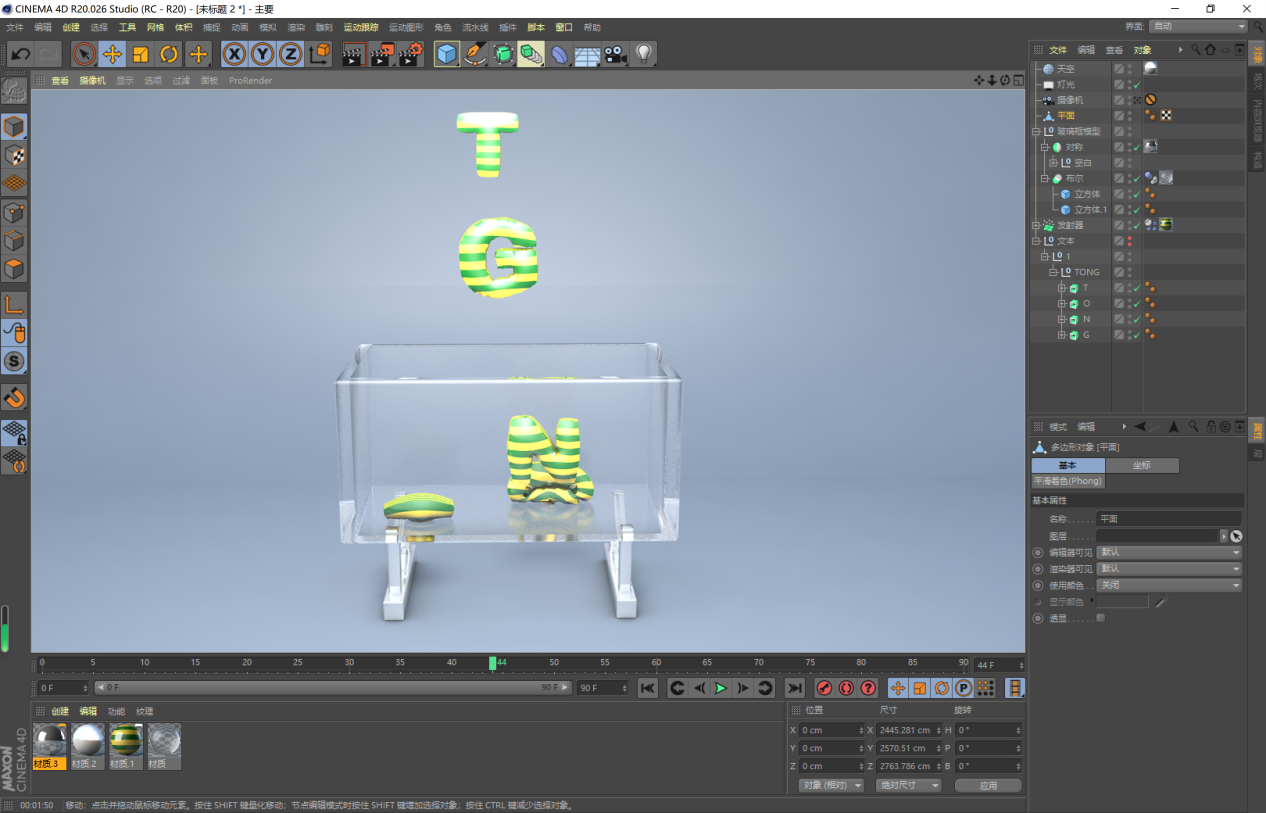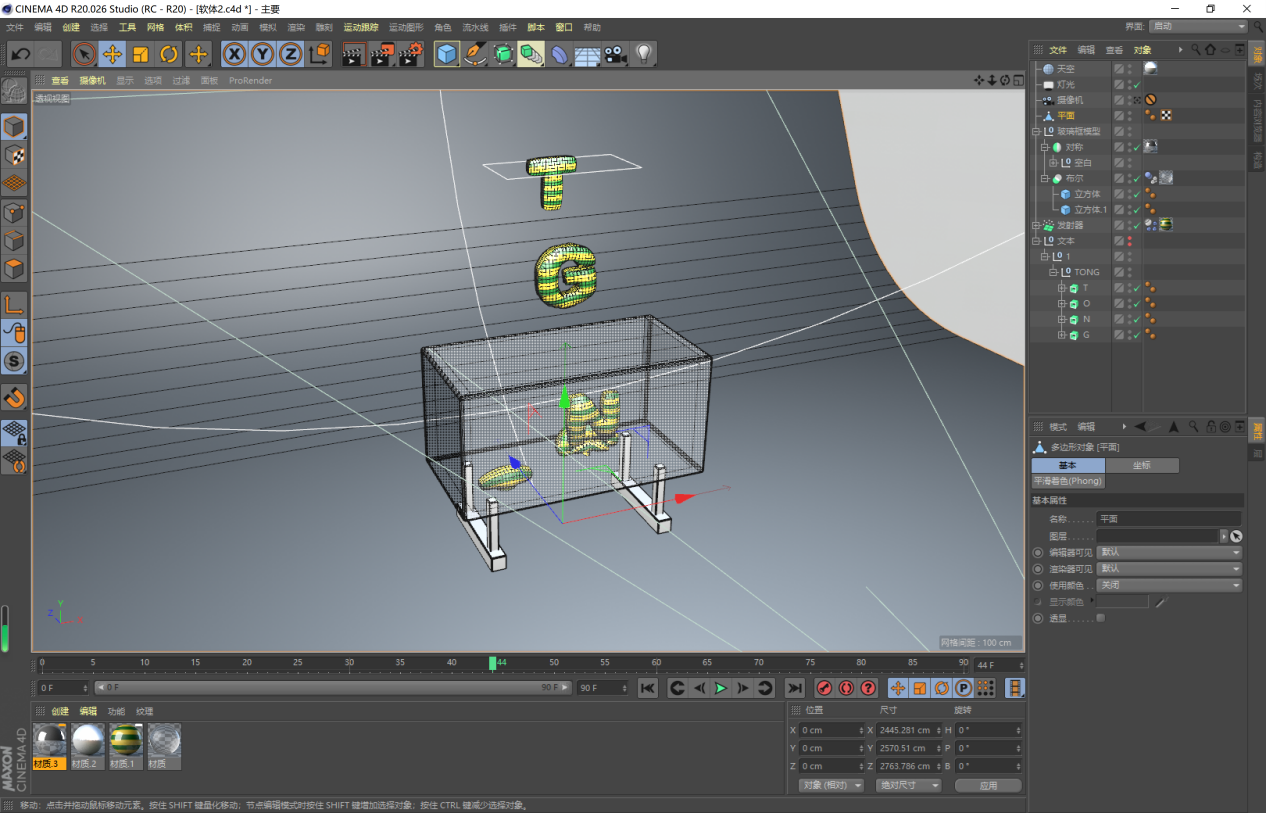 根据学校疫情防控安排,本周《Cinema4D特效制作》课程采取线上教学。主要通过讲解使用C4D软件进行柔软字母建模及动画效果制作,配合透明的玻璃框制作出比较有意思的动画效果,完成本次课程的教学目标。