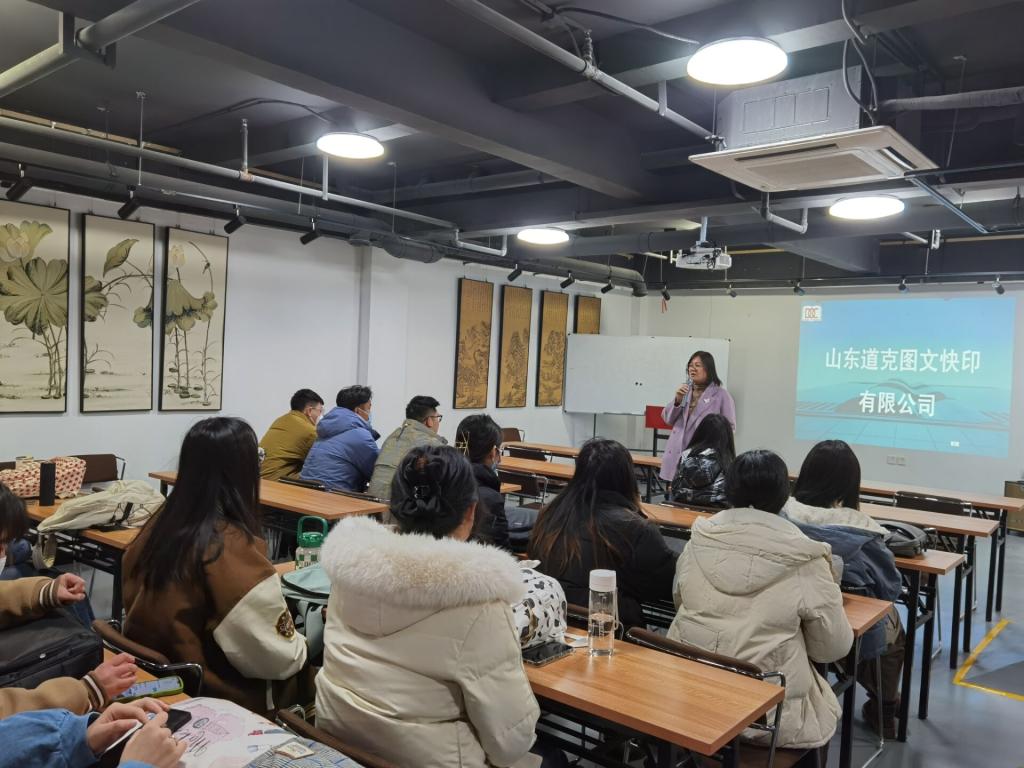 毕业实习是视觉传达设计专业集中进行的毕业实践环节,是对本专业四年课程知识与技能的综合运用,在视觉传达设计人才培养过程中是不可或缺的。近日,视觉传达设计专业毕业生到济南高新区道克图文快印公司开展实习工作,根据专业特点学生分别安排在了广告部和后期制作部,同时企业对学生进行了岗前培训。