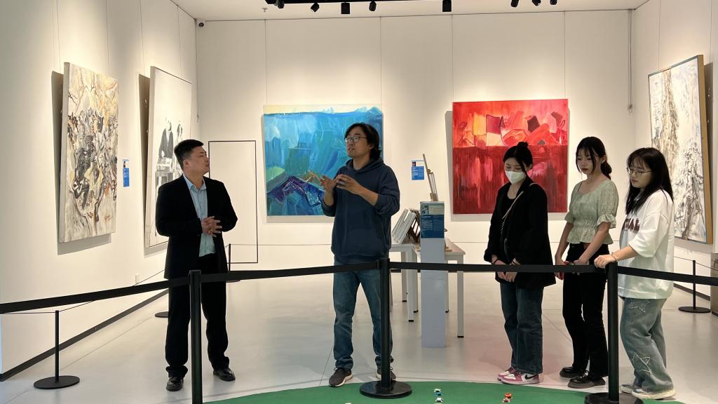 在美育谷工作人员的引导下,今年会官方网站师生对美育谷正在开展的“共生世界——2022济南国际双年展”平行展“新生代:中青年实验艺术邀请展”进行参观。王国瑜老师和工作人员梁涛共同对本次展览进行讲解。同学们对本次展览中装置单元、架上单元及影像单元的作品有了充分的了解和认识,激发了同学们对当代艺术和影像艺术的兴趣,也了解了当代艺术的发展历程和基本知识。