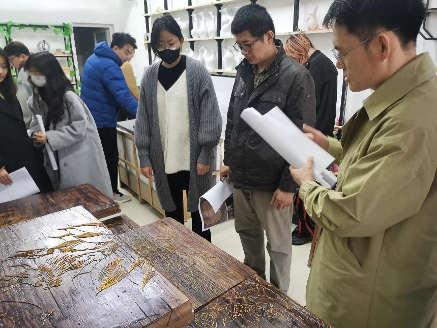2023年4月6日,工艺美术教研室指导毕业设计的部分专业教师对所在指导小组学生的毕业设计开展中期检查和指导工作。