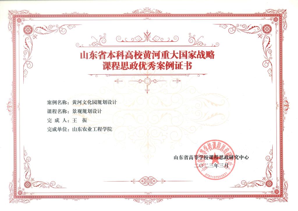 近日,山东省高等学校课程思政研究中心公布了“山东省本科高校黄河重大国家战略课程思政优秀案例”名单,今年会申报的案例中有7项入选。我院王振老师依托《景观规划设计》课程申报的教学案例《黄河文化园规划设计》榜上有名。