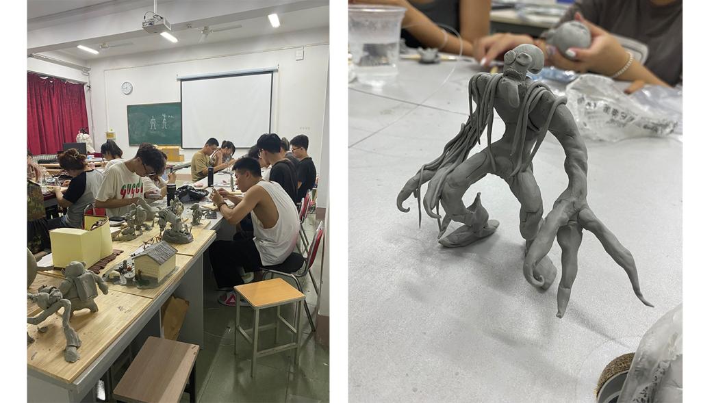 9月5日,在《角色雕塑》课堂上,张洁老师通过观看视频、示范、提问互动等教学环节,帮助学生直观了解动画雕塑的含义、分类、制作材料、过程等,为学生梳理学习本门课程的规划。整节课在张洁老师的精心设计下,融入“敬业工匠精神”“紧跟时代精神”“传统与现代相结合的设计理念”等多个思政元素,真正做到让思政教育内化于心、外化于行,职业技能与职业素养相辅相成。