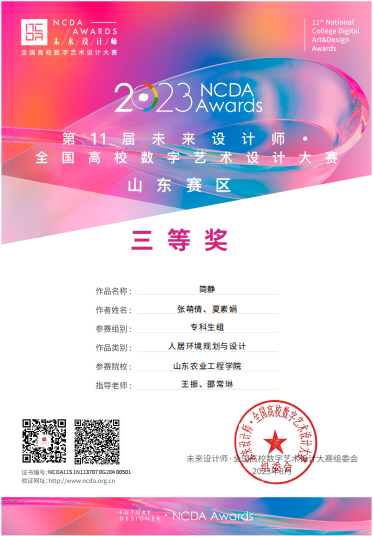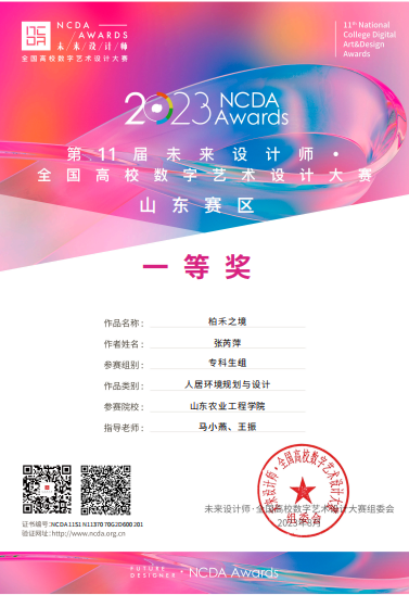 我院环境艺术设计专业学生作品在“第11届未来设计师·全国高校数字艺术设计大赛”中喜获佳绩,荣获多个奖项,其中,一等奖1项,二等奖1项,三等奖 2项。