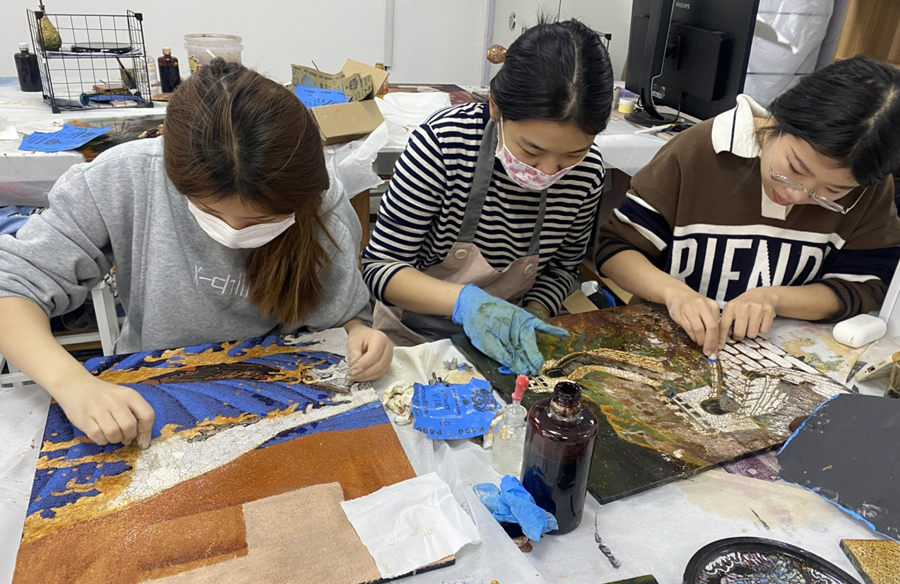 染缬工艺、陶瓷成型基础、现代陶艺创作、纤维工艺基础、纤维艺术创作、漆艺基础、漆艺创作、陈设艺术设计、文化创意产品设计等。