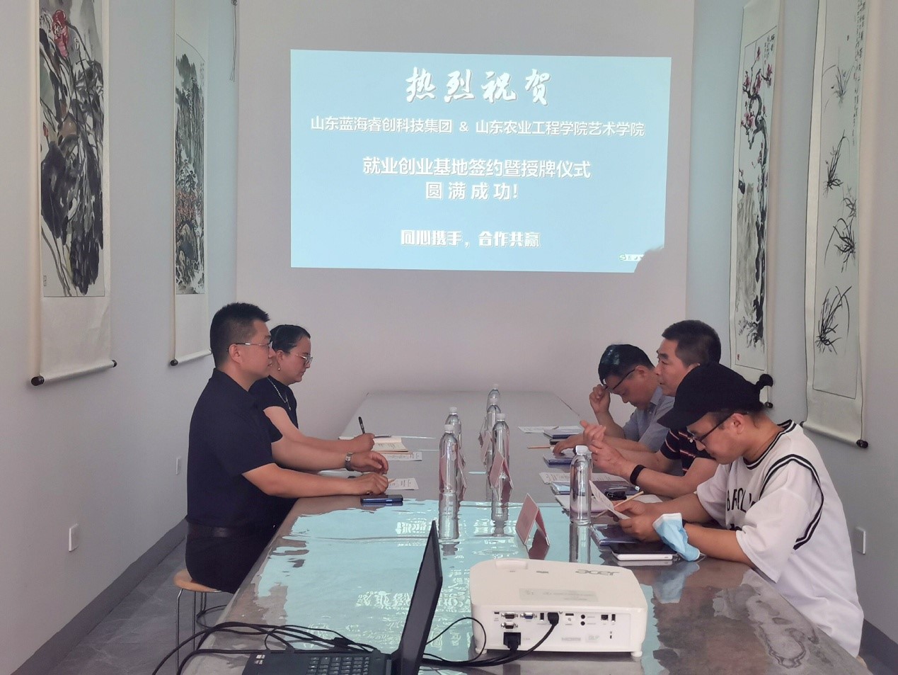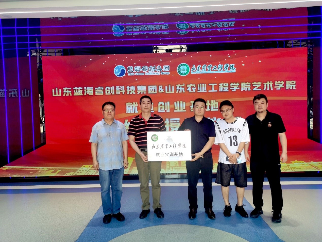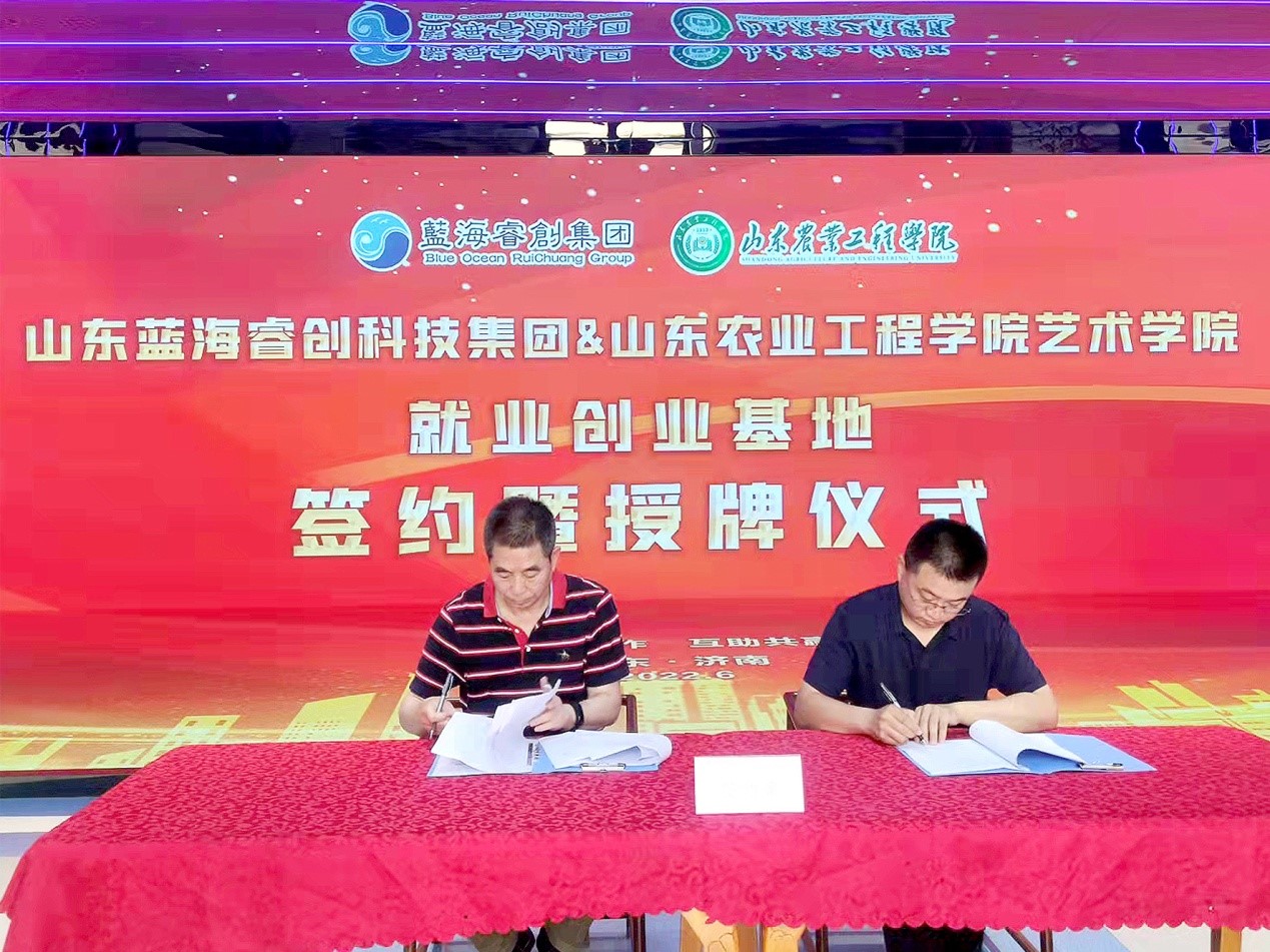 622日,艺术学院与山东蓝海睿创科技集团签订大学生就业创业合作协议,挂牌仪式在山东蓝海睿创科技集团总部成功举行。艺术学院党总支书记解心江、副院长安明明、团总支书记马兴、辅导员史晨旭老师、蓝海睿创集团董事长吕昌建、办公室主任胡凤等人共同参加该活动。
