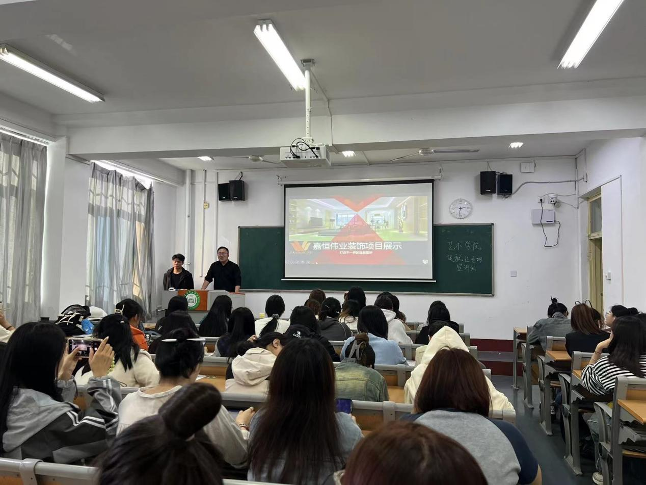 为进一步推进就业工作,帮助2024届毕业生了解就业市场,为他们提供更多可供选择的就业机会,艺术学院邀请嘉恒伟业装饰设计公司来校进行专场就业宣讲会。宣讲会于2023年10月26日在一号教学楼109教室召开,2024届视觉传达设计专业毕业生参与了本次宣讲会。