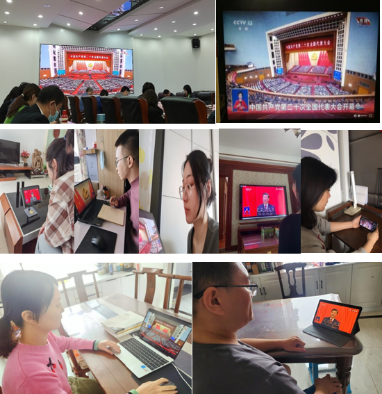 中国共产党第二十次全国代表大会于2022年10月16日在北京隆重召开。艺术学院党总支及时组织了全体教职工及学生通过线下线上、集体个人相结合的形式收看了中国共产党第二十次全国代表大会开幕盛况。