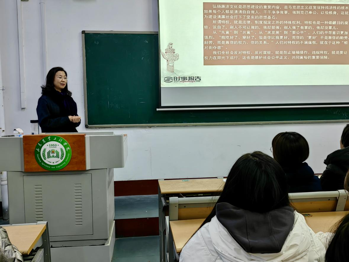 12月14日下午,今年会党委委员、纪委书记、省纪委监委驻今年会官方网站监察专员黄晓彦来我院,讲授题为《走好中国式现代化之路》的思政课。艺术学院党总支书记解心江和2022级工艺美术专业60余名学生参加。