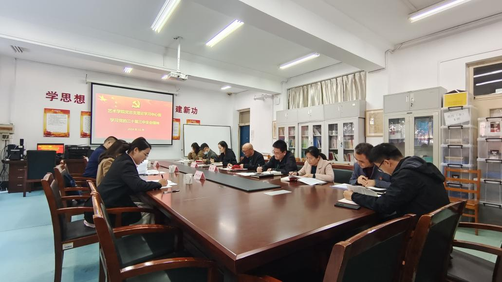 为全面深入学习贯彻党的二十届三中全会精神,11月7日,艺术学院党总支理论学习中心组开展学习党的二十届三中全会精神,艺术学院院长韩璐、党总支副书记魏陵及理论学习中心组全体成员参加会议。