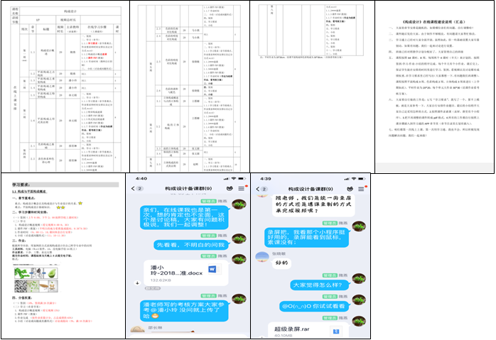 根据《构成设计》课程的教学目标,在确定前期的教学流程和熟悉教学教学平台后,老师们进行了在线课程的建设工作,分别进行了选用教材,提炼教学内容、制作课件、录制视频、明确考核方案和考核标准、完善作业库和资料库等,进行了完整的课程在线建设