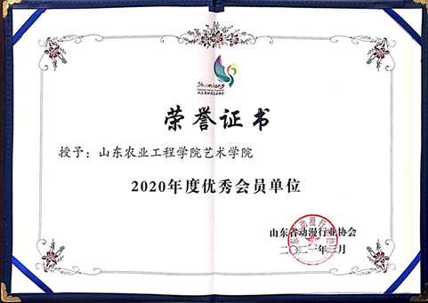 2021年3月山东省动漫行业协会为鼓励2020年度在我省动漫行业领域做出突出贡献的会员单位,根据《山东省动漫行业协会优秀会员单位评审办法》最终评选出今年会官方网站艺术学院等17家会员单位为“优秀会员单位”。在评选过程中我院艺术学院从山东师范大学、山东艺术学院等13所高校中脱颖而出,是唯一获得“优秀会员单位”荣誉的高校单位。