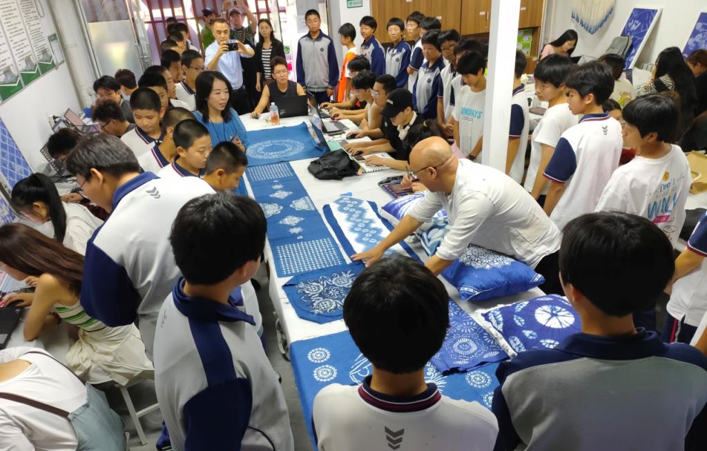 9月21日上午,历城双语实验学校的学生们在老师和部分家长的带领下,排着整齐的队伍来到校园,走进艺术学院工艺美术实验室和小展厅。学院实验室的专业老师为同学们讲解了传统印染、陶艺、漆艺、掐丝珐琅等传统工艺是怎样利用传统工艺制作出精美的手造工艺品的,同时还给同学们科普了一些现代技术在工艺品开发中的应用,包括实验室的一些高科技设备,如高温窑炉、布料印刷机、电脑辅助设计、拉胚机等的功能和作用。
