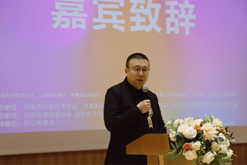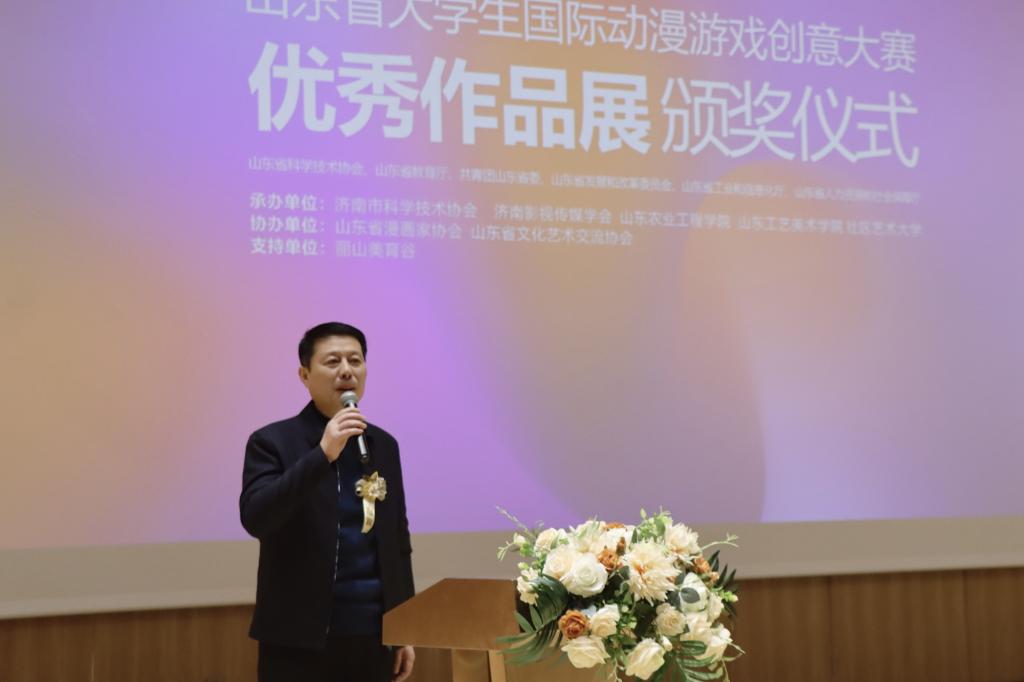 12月12日上午,由山东省科学技术协会、山东省教育厅、共青团山东省委、山东省发展和改革委员会、山东省工业和信息化厅、山东省人力资源和社会保障厅共同指导; 济南市科学技术协会、今年会官方网站、济南影视传媒学会、山东工艺美术学院联合承办的第十五届山东省大学生科技节——山东省大学生国际动漫游戏创意大赛优秀作品展开幕式暨获奖作品颁奖仪式在丽山美育谷成功举办。校党委书记张鸿波宣布展览开幕。