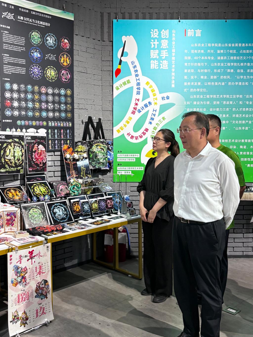 设计赋能,创意手造。6月初,艺术学院手造作品亮相山东手造展示体验中心。自开展以来,展览持续受到社会各界的广泛关注和普遍好评。省委宣传部副部长程守田,校党委副书记、校长李进京等校内外领导先后莅临展厅参观,并给予高度评价。