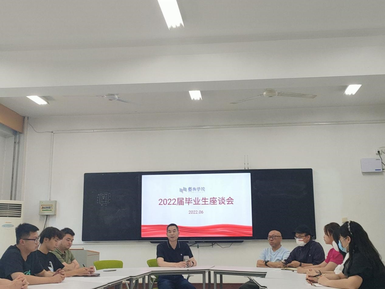 毕业季来临之际,为深入了解毕业生需求,倾听毕业生心声,艺术学院于2022年6月10日在一教102智慧教室召开毕业生座谈会,艺术学院党总支书记解心江、党总支副书记魏陵、团总支书记马兴、毕业班辅导员、教师代表史晨旭、李林与各位毕业生代表共同参加了此次座谈会。