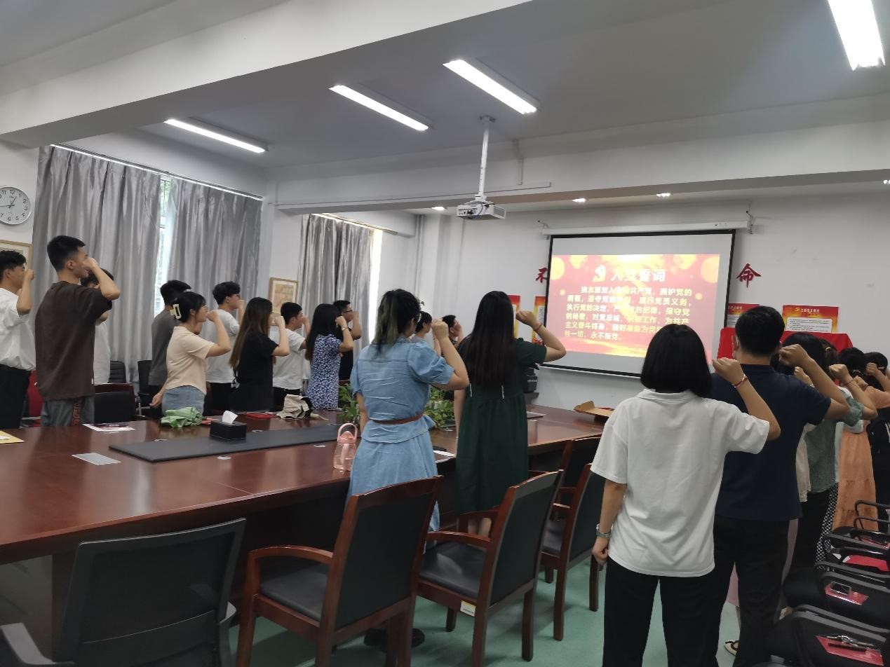 座谈会后,由专职组织员刘加领誓,全体党员重温入党誓词,面对党旗,庄严宣誓,以铿锵有力的声音,诠释向党之心、青春力量。