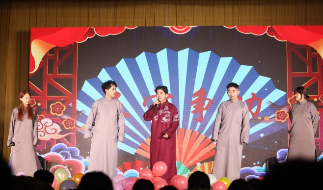 12月27日18:30,艺术学院2024年元旦晚会在济南校区礼堂隆重举行,济南校区人文学院党总支书记王纪,艺术学院党总支书记解心江,艺术学院党总支副书记魏陵,艺术学院副院长安明明,以及艺术学院教师代表出席晚会。