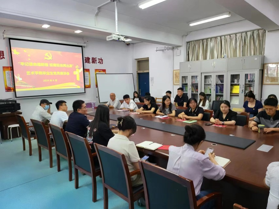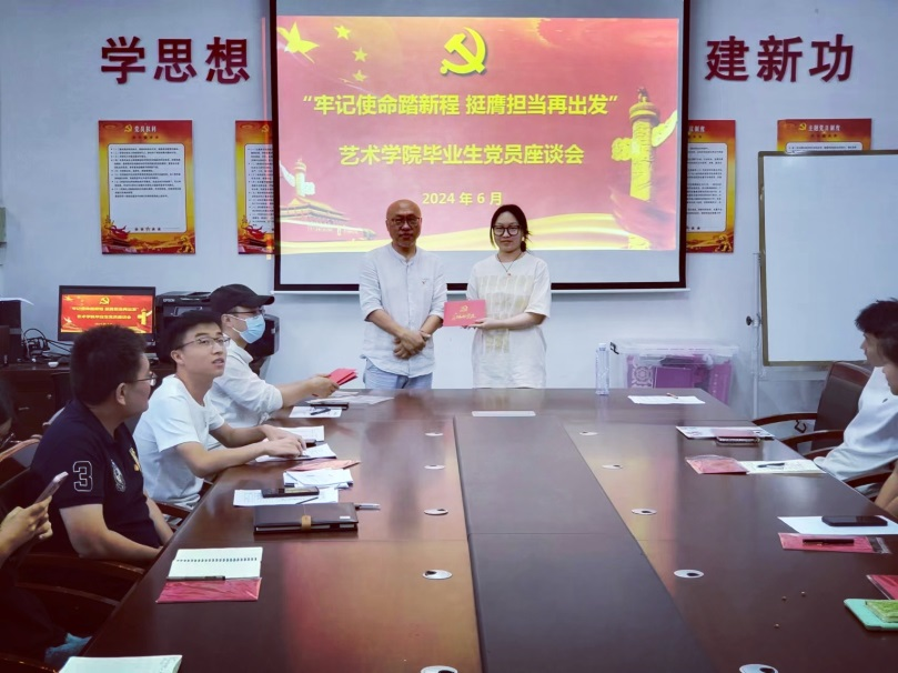 为进一步激励毕业生党员爱国爱党的热情,引导广大毕业生党员坚定理想信念,以饱满的热情踏上新征程,6月24日,艺术学院在1教108教室开展“牢记使命踏新程 挺膺担当再出发”毕业生党员座谈会。本次会议由学生第二党支部书记秦建辉主持,艺术学院党总支副书记魏陵、专职组织员刘加、团总支书记马兴、辅导员王江南、李夏然以及2024届全体毕业生党员参加此次座谈会。