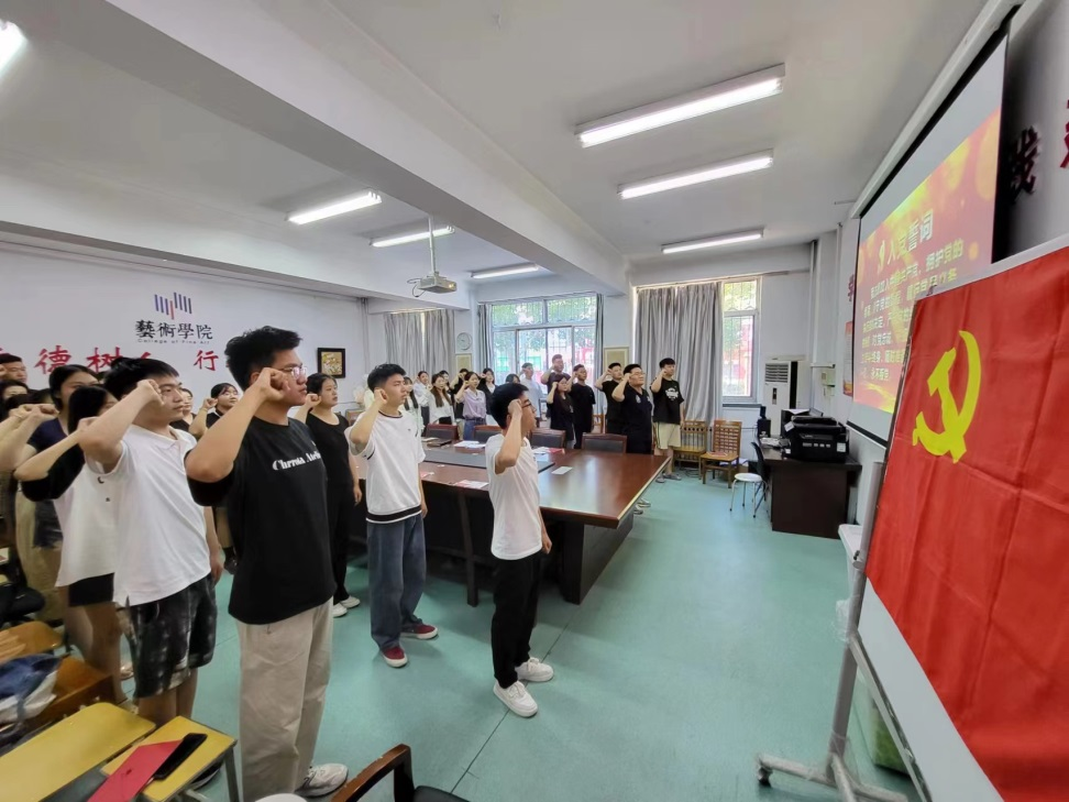 座谈会后,由学生第二党支部书记秦建辉领誓,全体党员重温入党誓词,面对党旗,庄严宣誓,以铿锵有力的声音,诠释向党之心、青春力量。