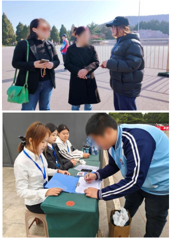 志愿者们提早到达志愿地点,在英雄广场区域忙碌而有序地展开各项服务。其中,有的志愿者积极引导前来祭奠的市民和团队有序排队,耐心细致地分流参观人群,为清明祭扫营造了文明、安全、和谐的环境;有的热情提供园区祭扫登记和路线指引,确保每位祭扫者都能顺利到达指定地点和有序出场;有的志愿者协助陵园工作人员,以镜头传承生命记忆,让清明追思更添温度与厚度。