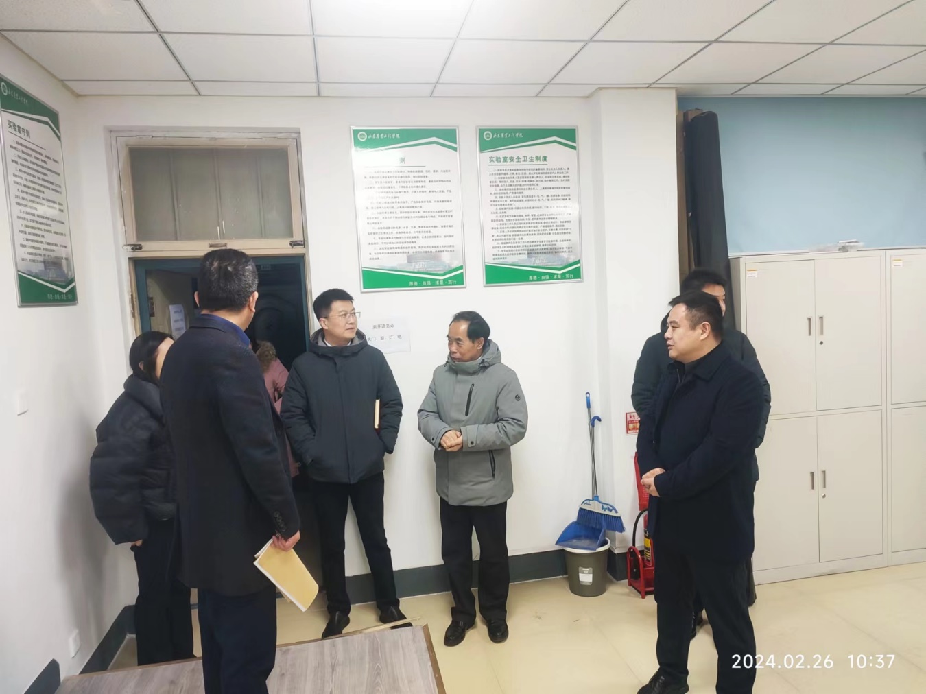 为深入贯彻落实《高等学校实验室安全规范》《高等学校实验室消防安全管理规范》等文件精神,全力做好新学期实验室安全工作,2月26日,党委副书记、校长李进京,党委委员、副校长周吉鹏带队,深入学校实验室进行开学前实验室安全检查。党委(学院)办公室、保卫处、国有资产与实验室管理处及相关学院等部门负责人陪同检查。