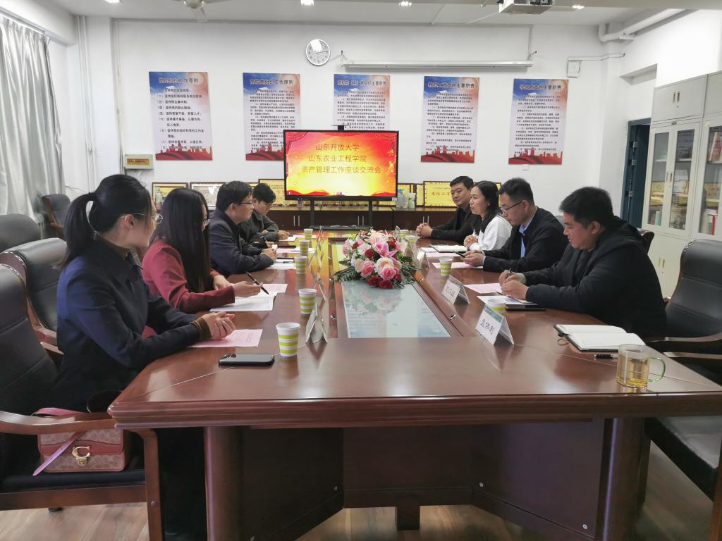 10月29日,山东开放大学国有资产管理处处长闫光荣一行5人来今年会考察交流,人事处、国有资产与实验室管理处等部门负责人及相关人员参加座谈交流。