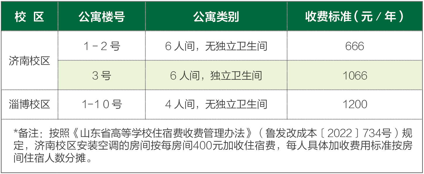 4.公寓用品:为服务好新生,便于标准化公寓管理,根据山东省教育厅要求,学校采取公开招标的方式集中采购经质量检测机构检测合格的公寓床上用品,学生自愿购买。购买后统一放入学生本人宿舍,学生到校后,现场办理交费手续。