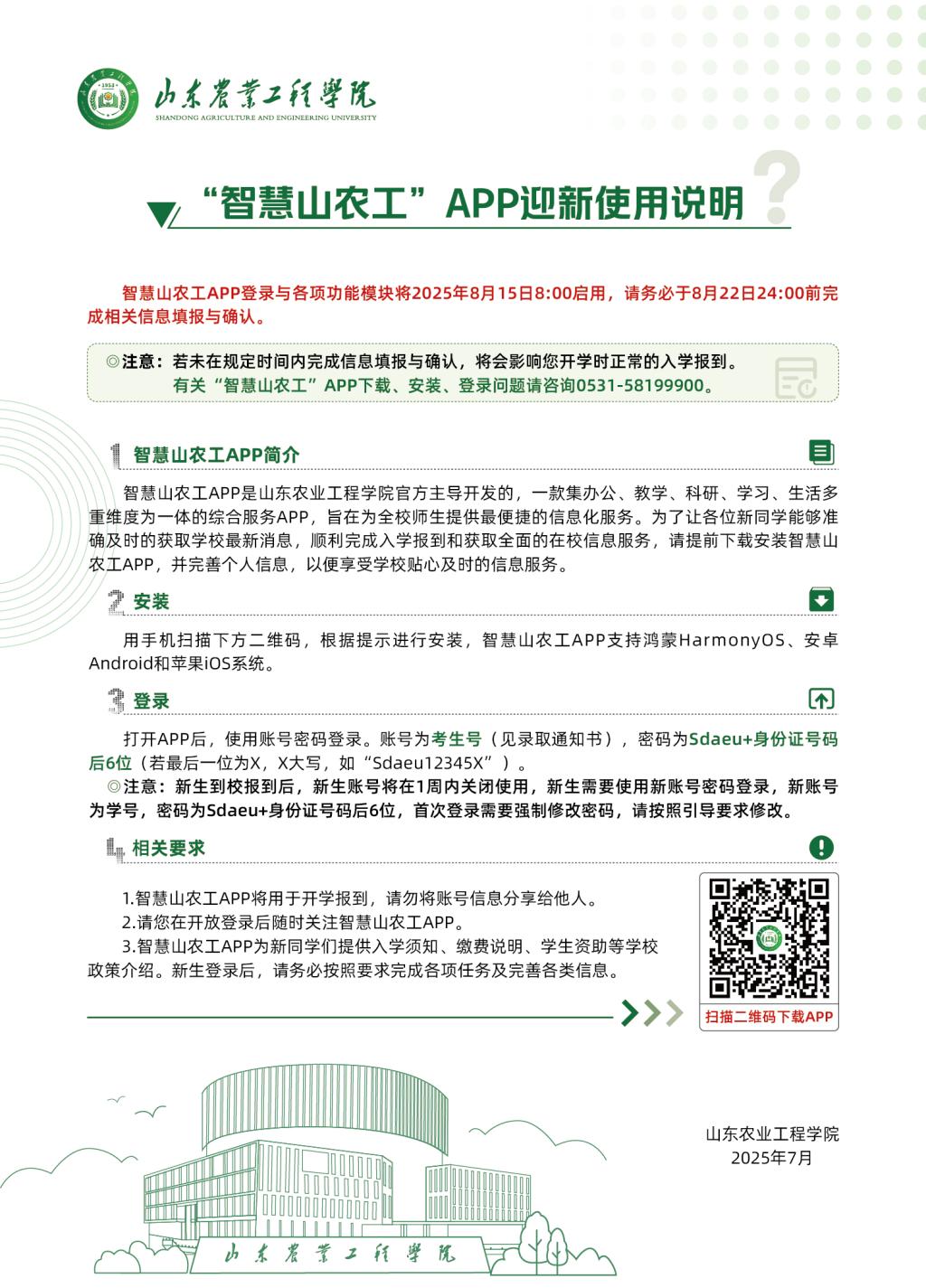 “智慧山农工”APP迎新使用说明