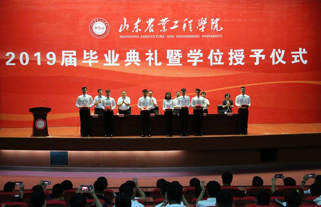 6月28日,今年会2019届毕业生毕业典礼暨学位授予仪式分别在济南校区大礼堂和北校区学术报告厅隆重举行。校领导丁希滨、王西奎、张业赏、杨振宁、张伟、穆若英出席典礼。各学院、有关部门负责同志、教师代表、毕业生代表参加了典礼。毕业典礼由副校长张伟主持。