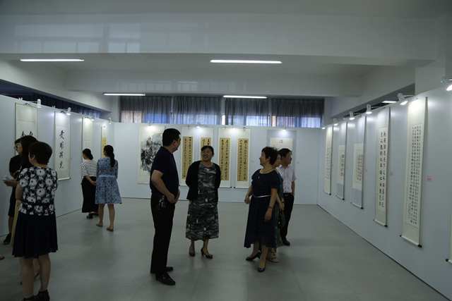 活动期间,校领导丁希滨、王西奎、张业赏、杨振宁、张伟、穆若英,离退休干部、师生代表参观了本次书画摄影展。